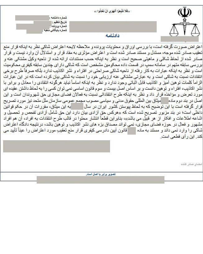 آقای جرجندی بابت اعتراض به حکم قبلی درخواست واخواهی به دادگاه داده بود که این درخواست در تاریخ 3 بهمن 1403 توسط دادگاه رد شد و حکم قبلی ایشان تایید و در تاریخ 7 بهمن 1403 ابلاغ شد. تصویر حکم صادره به شرح زیر است: