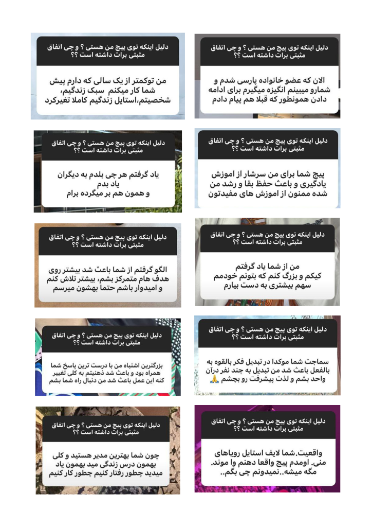 در تصویر زیر نظر برخی از افرادی که از آموزههای دکتر آریاپارسا الهام گرفتهاند را مشاهده میکنید: