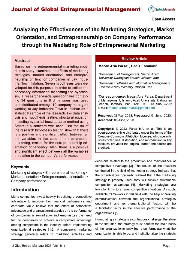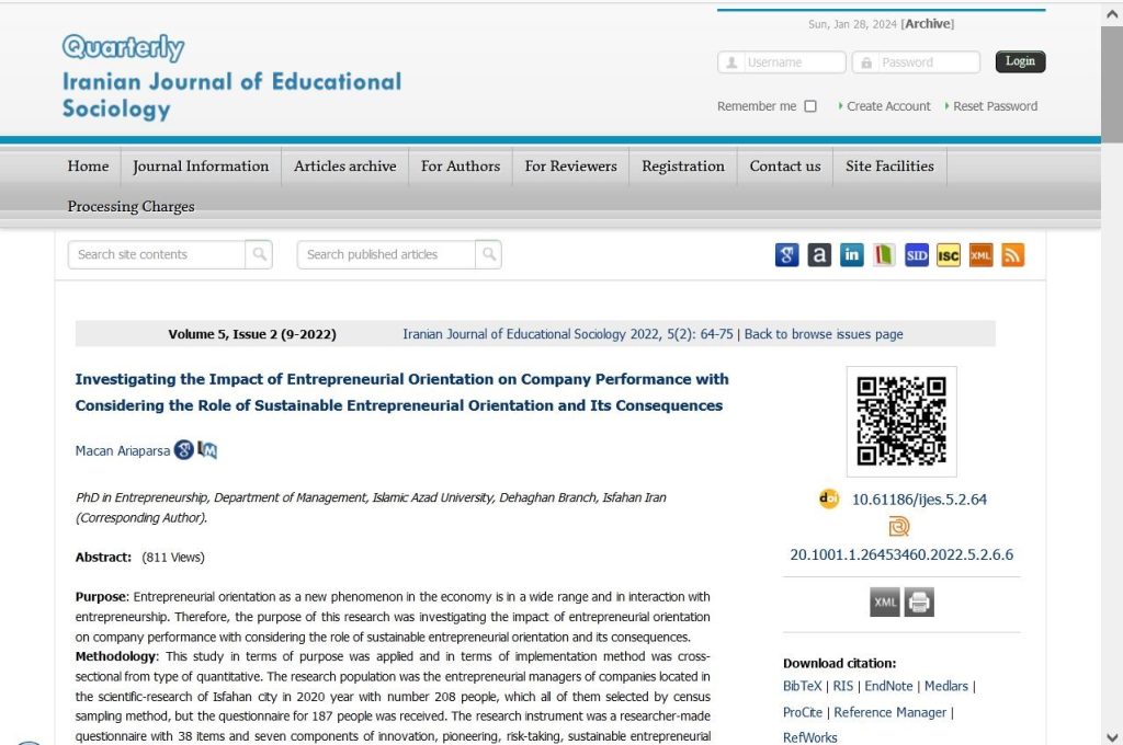 | 15 | بررسی جهتگیری کارآفرینانه و قابلیتهای بازاریابی بر عملکرد سرمایهگذاریهای جدید شرکت، سومین کنفرانس بینالمللی مدیریت، حسابداری و حسابرسی پویا، تابستان 1397. |